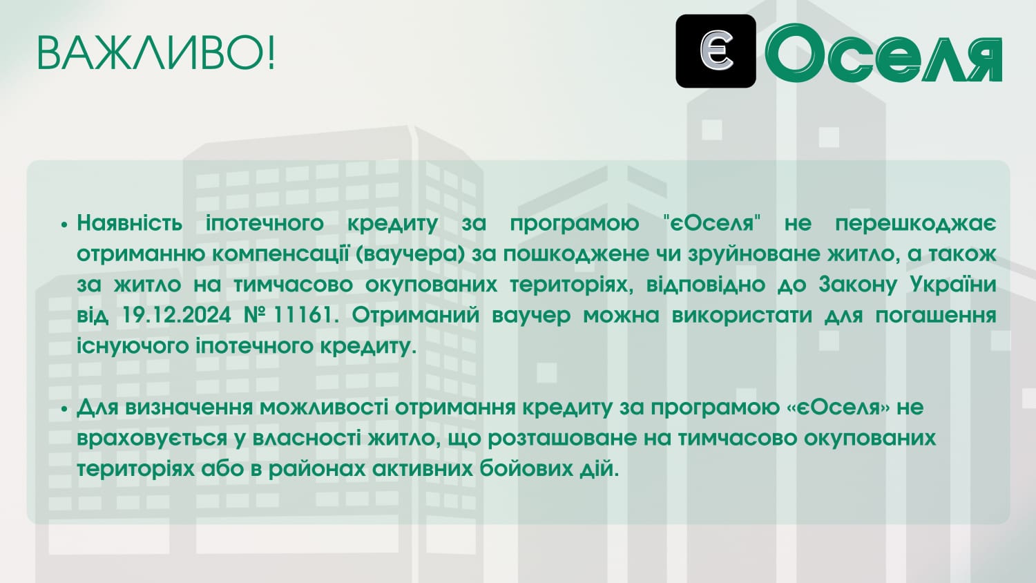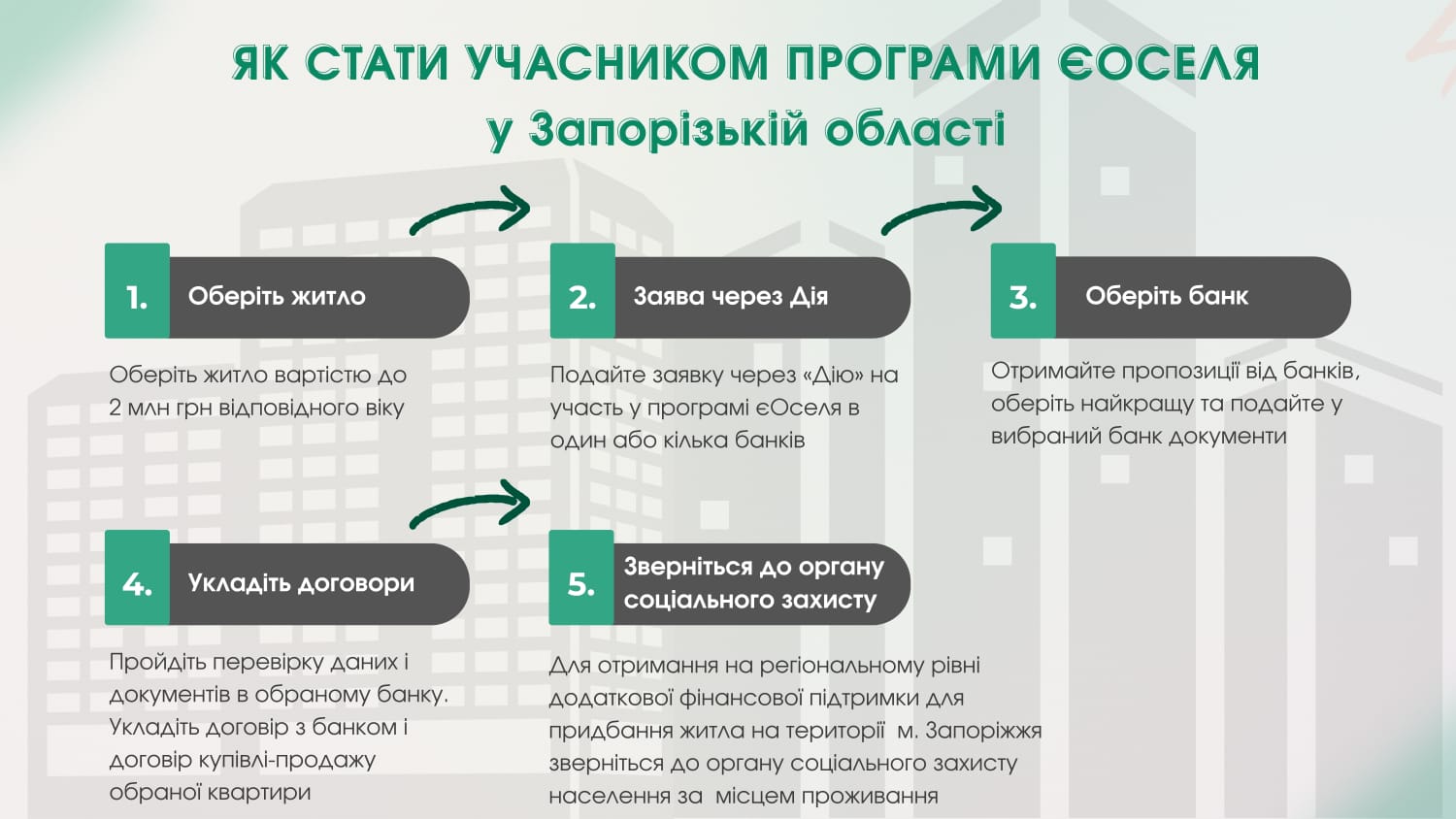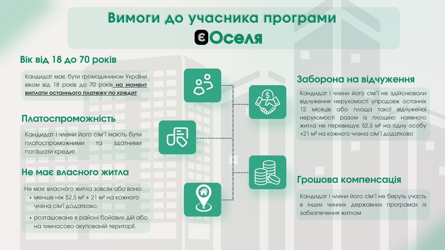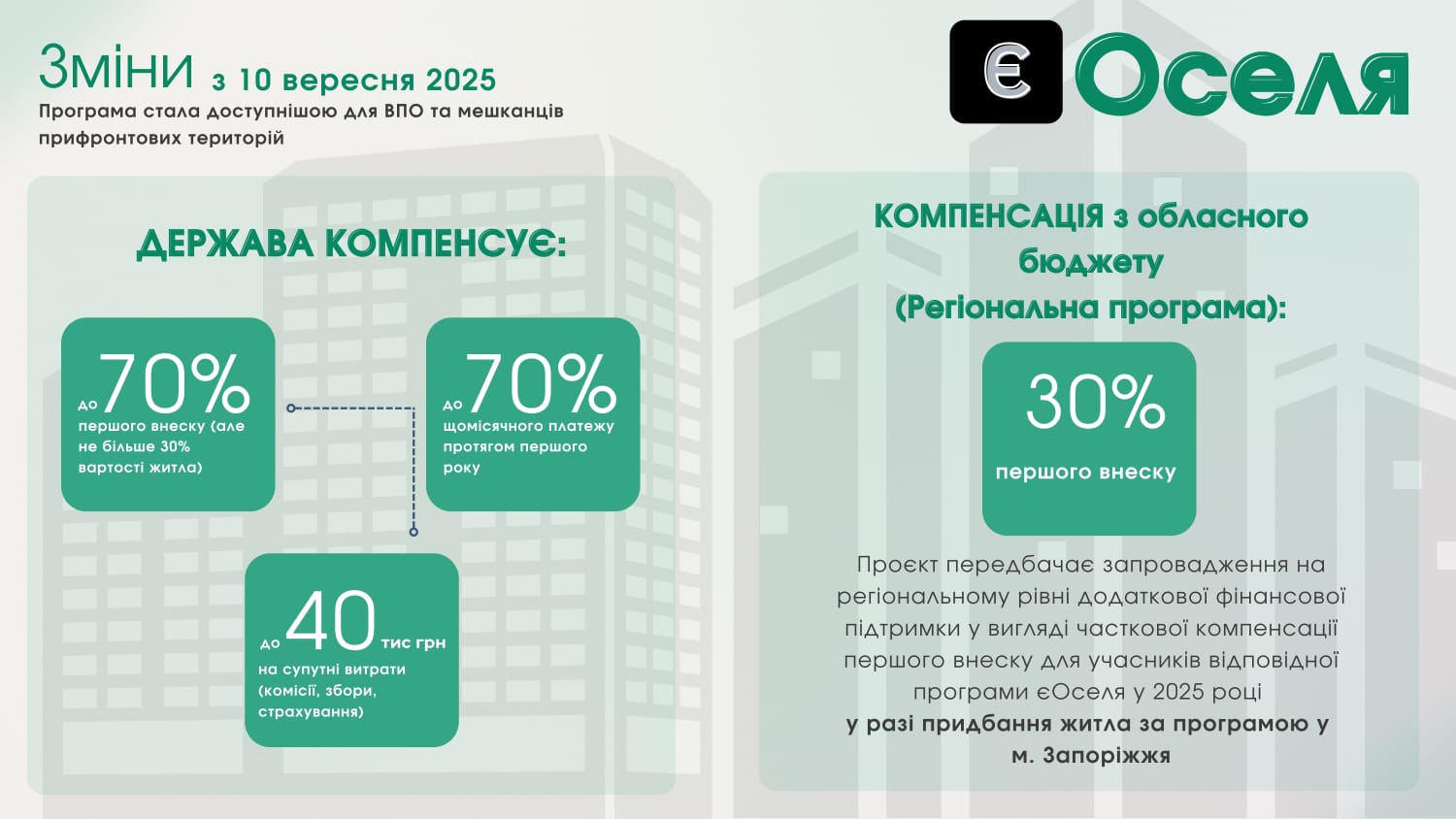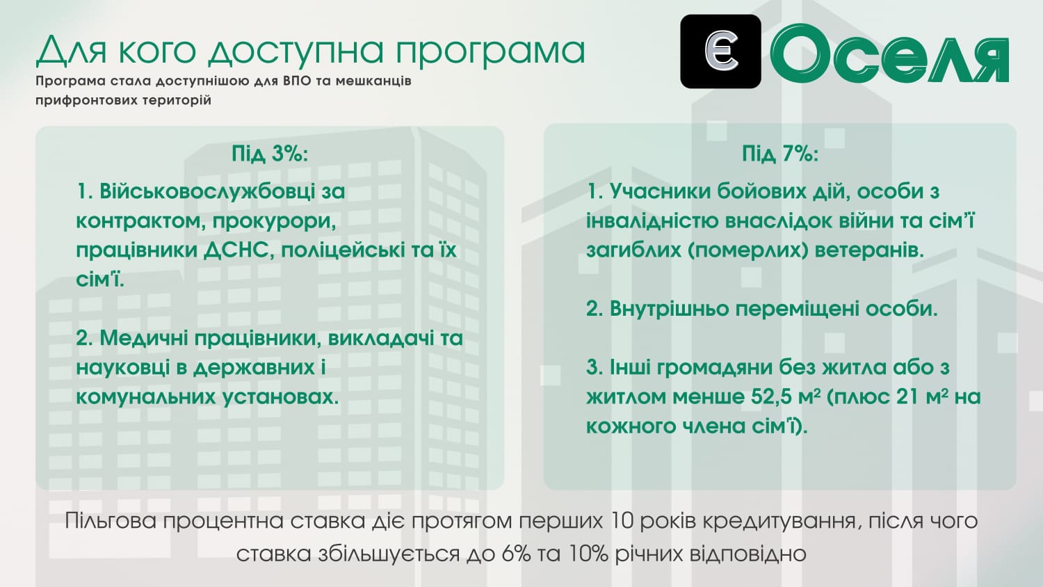 ГОЛОВНАІнформація для ВПОІнформаційно-роз’яснювальні матеріали про умови державної програми «єОселя» для внутрішньо переміщених осіб та мешканців прифронтових територій