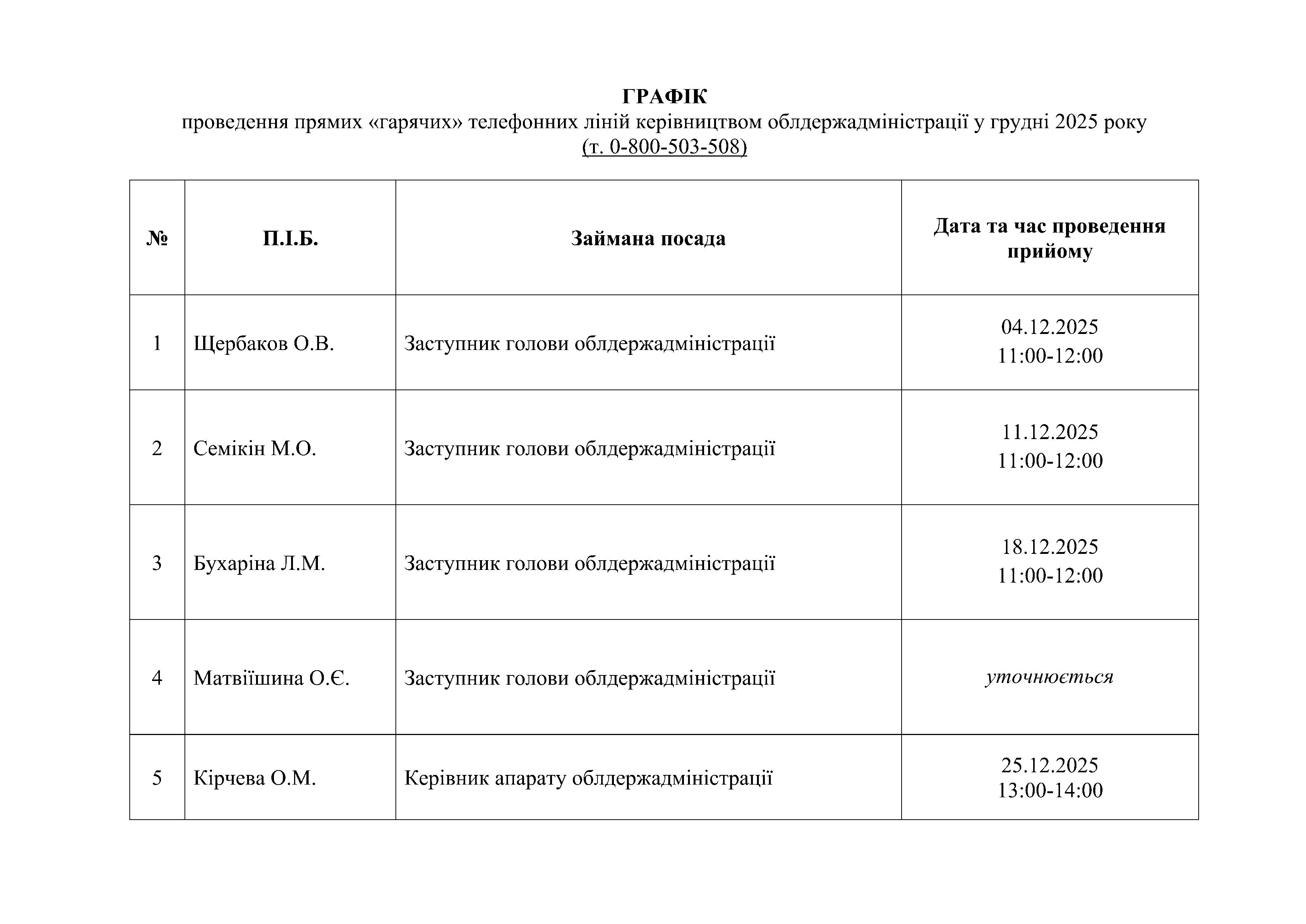 План-графік проведення прямих гарячих телефонних ліній спілкування з населенням керівництва громад Пологівського району на ІІ півріччя 2025 року