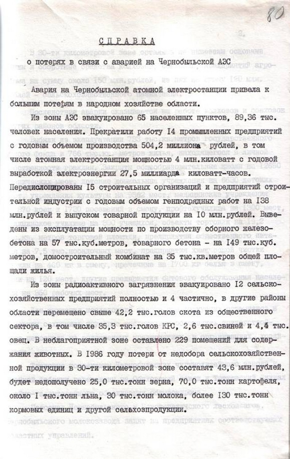 | Довідка про втрати у зв’язку з аварією на Чорнобильській АЕС. |