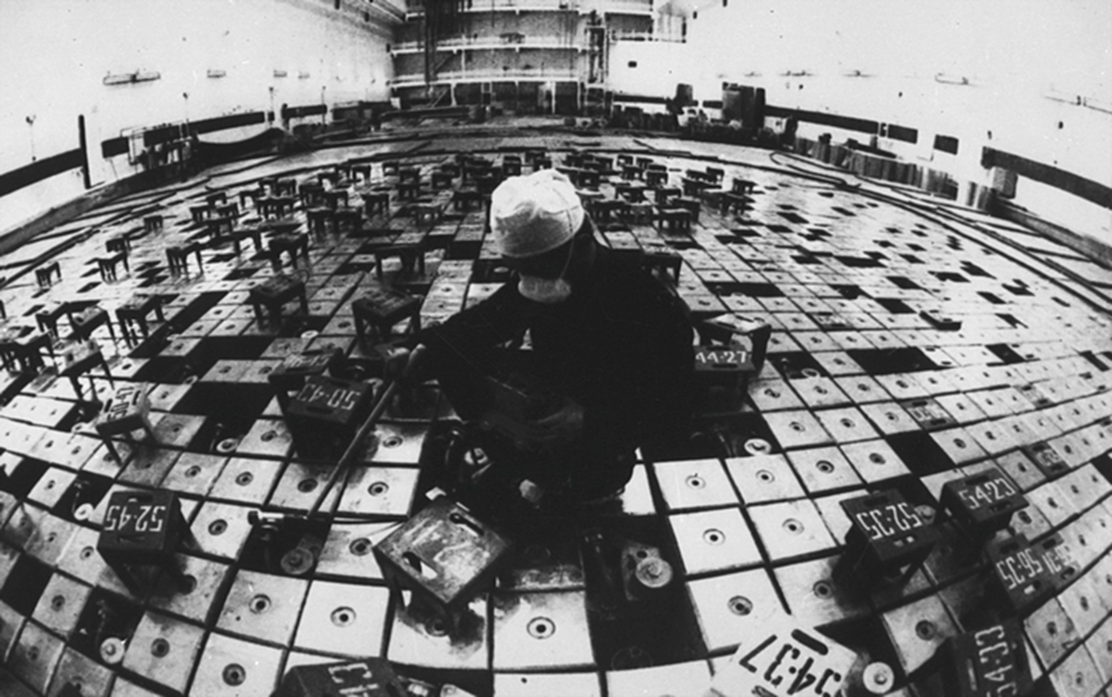 | Начальник зміни реакторного цеху № 1 Чорнобильської АЕС ім. В. І. Леніна В. Гладенко проводить радіаційний контроль поверхні реактора. Київська обл., 1986 р. Автор зйомки В. Зуфаров. |