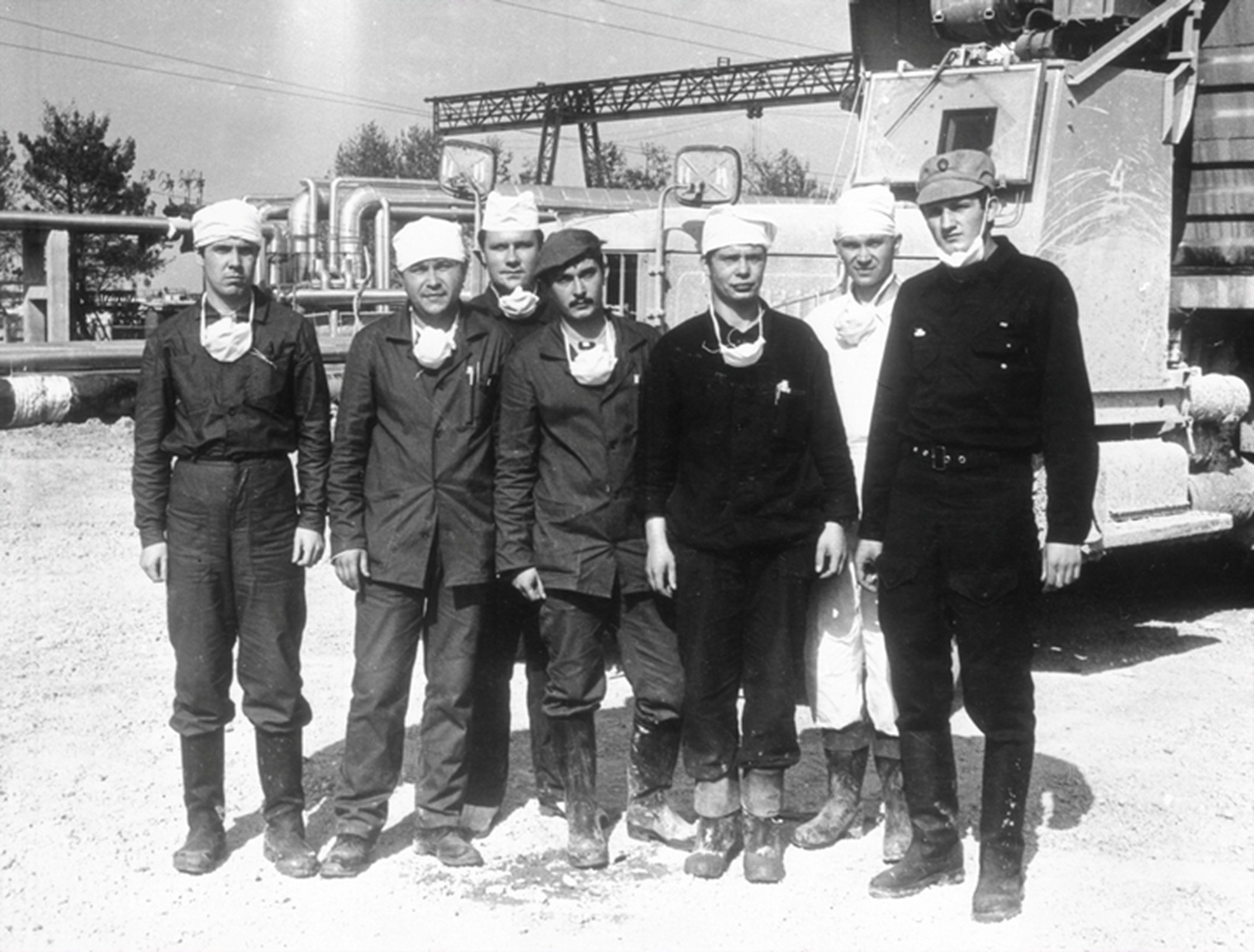| Група ліквідаторів наслідків аварії на Чорнобильській АЕС ім. В. І. Леніна. м. Прип’ять Київської області, 1986 р. |